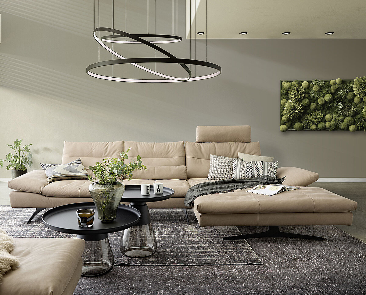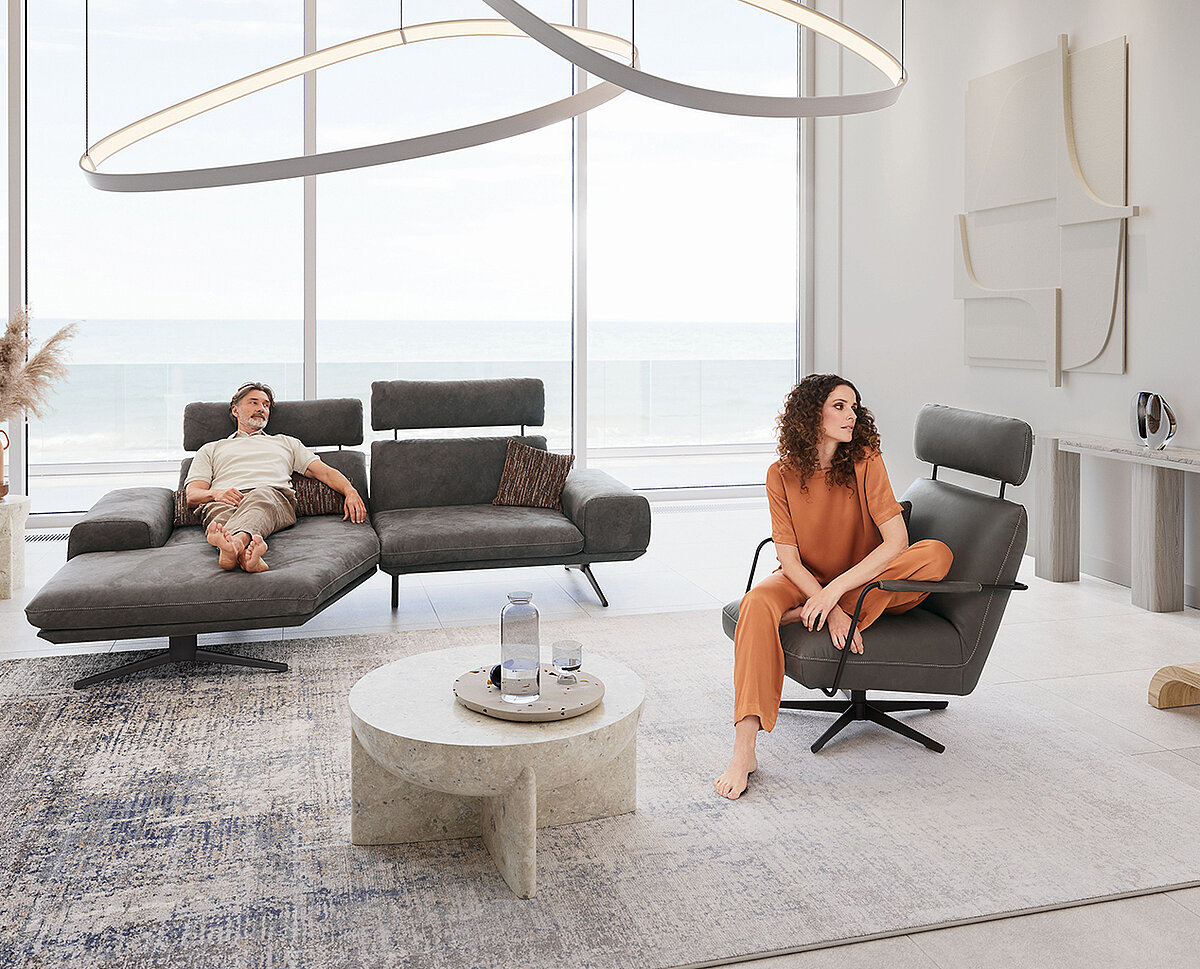 Der Herzschlag eines jeden Raumes »Modell seventy 5« ist weit mehr als nur ein Möbelstück - sie ist der Herzschlag des Raumes. Die Sitztiefenverstellung passt sich Ihren Bedürfnissen an, sodass Sie entweder aufrecht sitzen oder sich gemütlich zurücklehnen können. Die optionale Kopfstützen- und Seitenteilverstellung bieten zusätzlichen Komfort, ob Sie nun allein entspannen oder sich in der großen Kuschelecke zusammenrollen möchten - die für Familienmomente oder ruhige Abende zu zweit wie geschaffen ist. Die Metallkufen oder -füße sind in verschiedenen Farben erhältlich und runden das Design ab.