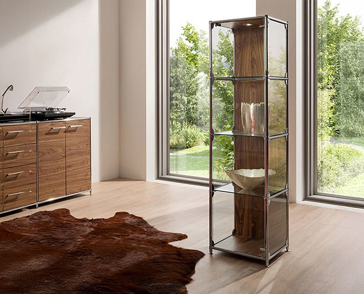 Für Geschirr, Gläser oder Lieblingsstücke: Vitrinen mit Glasfronten und staubgeschützten Fächern, optional mit Beleuchtung.